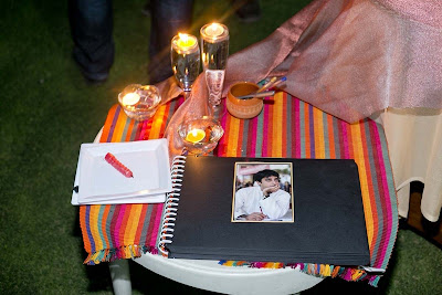 The serving tables had buffet set up so I spread some net and pebbles, placed single tea light holder along with the Jarberra and placed tags made by my nephews little eight year old.
