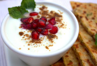 I LOVE pomegranate seeds. Now is the season and they are everywhere. I must try this unique raita, with potato!