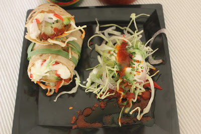 When ever I want to make something simple and delicious, Wraps come to my rescue.This weekend I did not want to do any elaborate cooking, as it is really getting hot . I know my co bloggers, Valli and Champa would surely have something interesting on their weekend menu.Anyway I choose something light and simple.Well,I made Aaloo Tikki Wraps.For the wrap, I used the regular wheat flour roti, made by the young girl, who comes in to make chapatis every day.The roll and the salad were simple and got done quite quickly.
