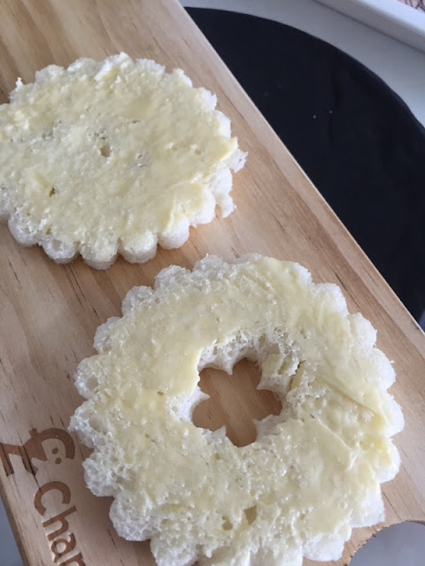 Cut 2 bread slices using a flower shaped cutter.