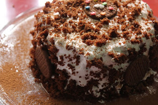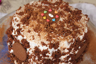 It’s been a long time now since I made Birthday cakes for the children…all grown up ..and with such lovely eggless cakes in the market…just gave up making them at home…well this time just felt like making something for my dear sunny …n here I am with this Black Forest Cake.I don’t like the typical cherry look on the cake so just used crumbled cake on the edges and some pure magic biscuits..n ofcourse those cute little heats!!