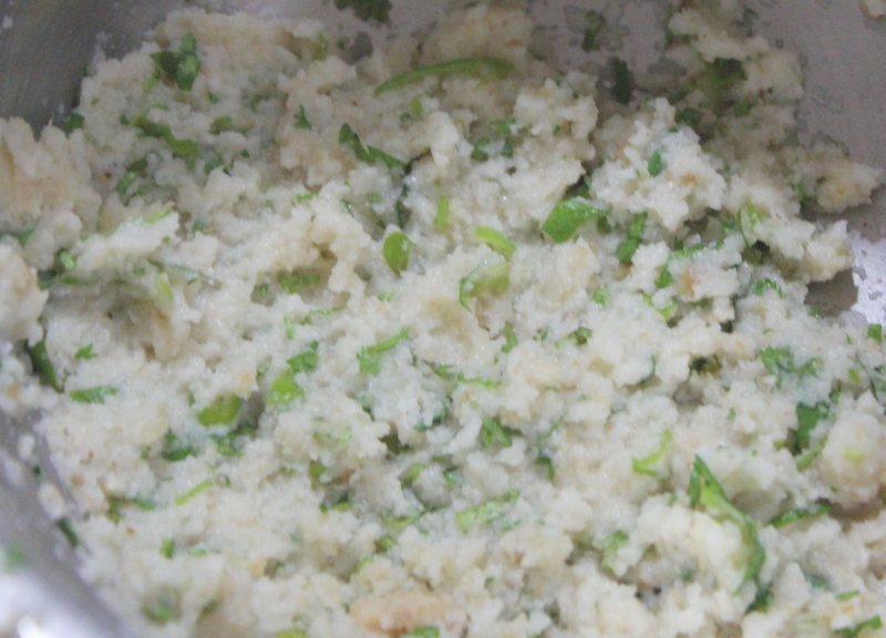 Take a ladle ful of the dough and spread on your palm with wet fingers.