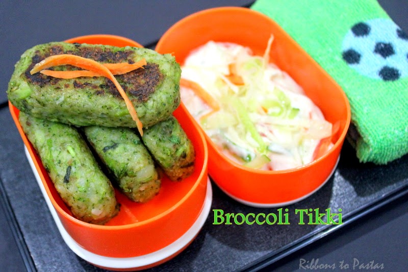 We begin a new week and for this week I have chosen to cook healthy snack box recipes.We mothers are always in search of snacks that are healthy and easy to pack. The kids hate to take food which is messy. They just want to finish the snack box and run to play. Today I have made Broccoli Tikkis . These are simple to prepare, healthy and taste delicious . I have shallow fried them, as everything is cooked and I did not want to spoil the nutrition by deep frying.