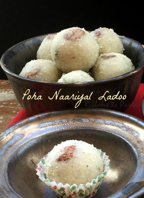 BM # 66 Week: 1 , Day : 2 Theme: Kids Lunch Box Continuing with the theme of Kids Lunch Box , I have another ladoo today. This ladoo has been made with Poha or the beaten rice along with dried coconut. I added some pistachios and raisins which gave these ladoo an amazing flavor.…