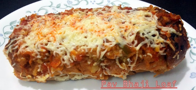 The first dish is a Pav Bhaji Loaf. This is what my son makes for himself when I make Pav Bhaji. At times he wants to change the form of this street food and give it that conti look. Here he has used the same laadi Pav and bhaji that we normally make with those buns. The transformation is amazing.
