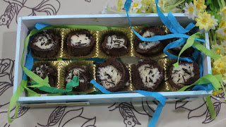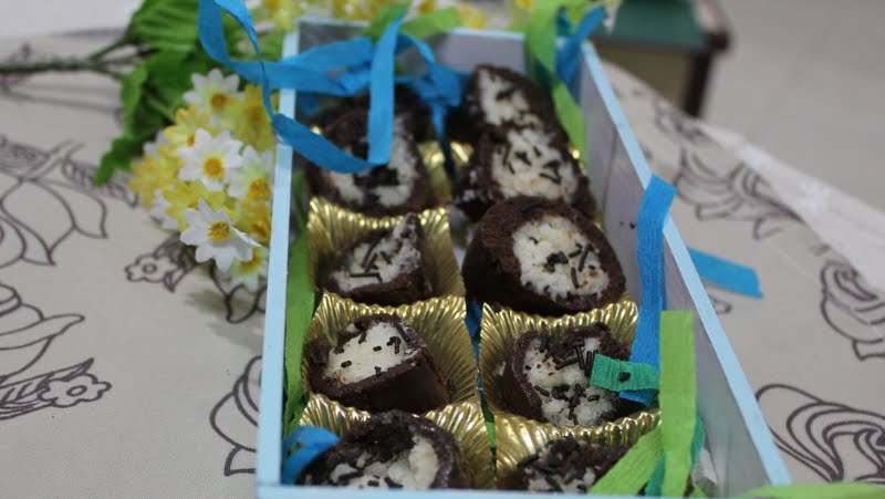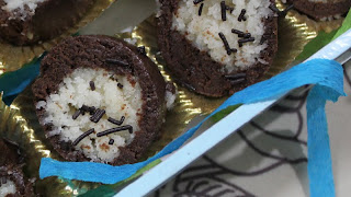 Now coming to Choco Rolls.The recipe is from Vatsala’s show n tell blog.Vatsala has some amazing recipes on her blog ,do check them out.Since anything to do with the combo of choclate and coconut is my favorite plus it fitted perfectly with my BM theme,kids friendly,no stove cooking….. I chose this recipe.