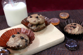 For Day 3 under festival recipes I have some chocolate chip cookies. Chocolate is a favorite flavor in our house and the majority prefers anything and everything with this sinful chocolate,though we have conscious eaters and all eat a very small portion of any sweet or chocolate. These cookies were made by my little niece. They came as a surprise as she made them while we were taking our afternoon nap. I woke up with the aroma of these bakes, wondering who was playing with my oven. The cookies came out perfect, very crunchy , very chocolaty and very addictive. Here is the recipe that she followed…