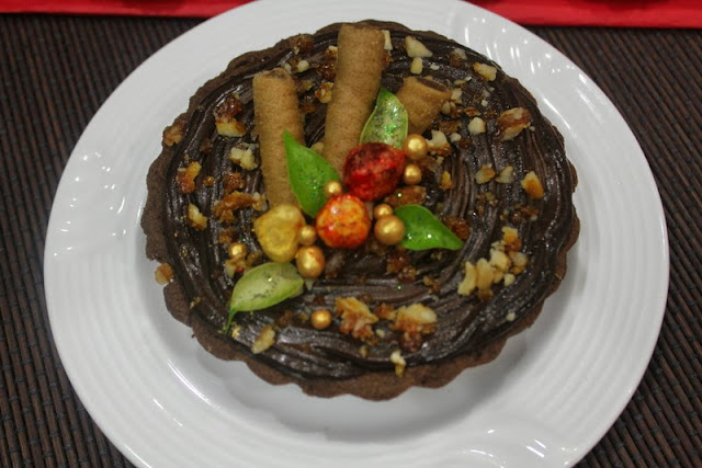 I did not add the caramelized hazel nuts to the hazelnut thing..as I wanted to pipe it, I sprinkled the praline which gave an awesome flavor, besides making it a fantastic garnish.
