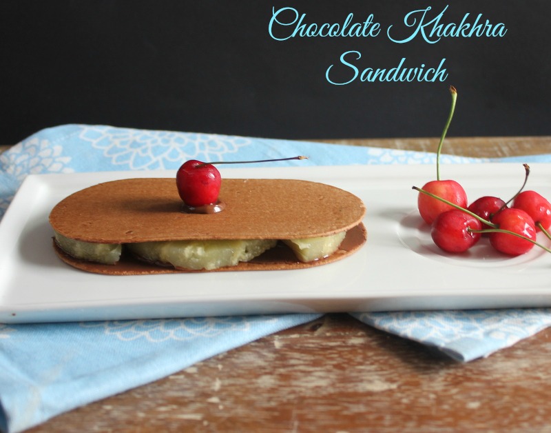 For the third day under no bread sandwiches I have a khakra sandwich. I made this with Chocolate khakra making it more chocolaty by spreading generous layers of nutella. I stuffed some tinned pineapple slices and wished I had some whipped cream to top. Cream or no cream the sandwich vanished in a second. It had a amazing flavor and I made it for my breakfast.