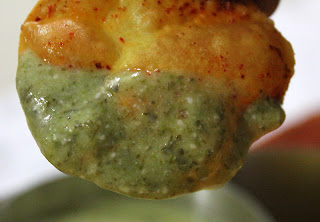dipped in the pudina chutney