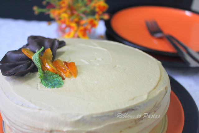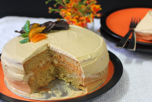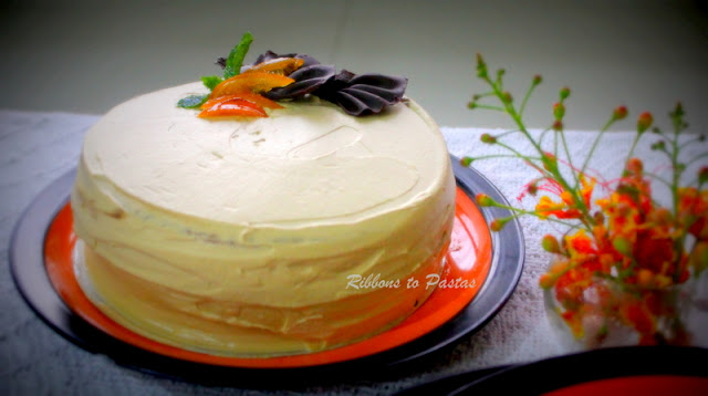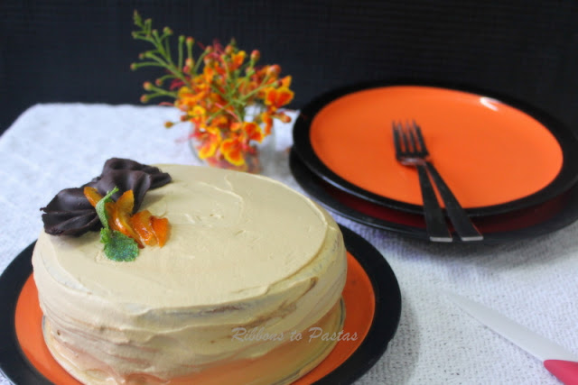 This is a vanilla based cake and its filled with orange segments and orange squash.Since we are not vanilla fans, I decided to frost it with coffee.The combination is truly mind blowing.