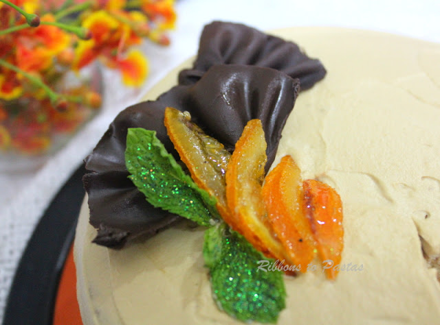 This looks so beautiful Vaishali! Love the way you've iced the cake, the candies orange slices and that pretty chocolate bow. How did you make that? Must try making candies orange too