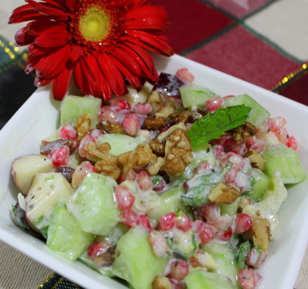 Super tempting and healthy salad with veggies and fruits..nice snaps..