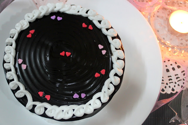 Vaishali, this cake is a stunner, with that ganache on top and the cute hearts. Ive made brownies with Oreos stuffed in them. But I love Dark Fantasy biscuits even more. Shall definitely try it out!