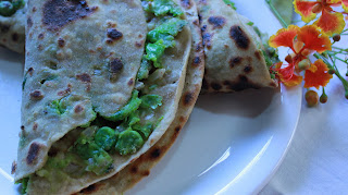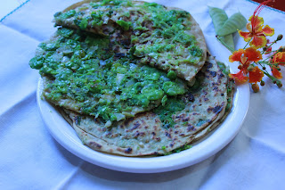Paratha’s are welcome for breakfast,for us sometimes for lunch too……mattar ka paratha is a total hit with my hubby.Winters is the ideal time as u get real fresh peas but these come out real good with the frozen ones too…just need to overboil them.U can serve these with a bowl of curd or some pickle,but we relish the taste without any accompaniment.