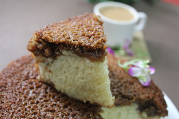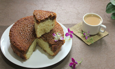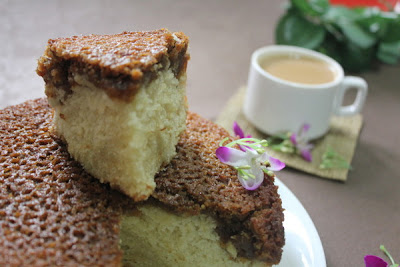 Drommekage fra Brovst…..the first few times I had a tough time in pronouncing it, but I kept repeating over and over again like a school kid and got the hang of it! I know Danish Dream Cake sounds simple , and in fact is very appropriate for this cake, it surely is a dream cake.Initially I was hesitant with the topping , due to coconut , as most of the family members are no fans of it, but truly the combination of coconut , sugar and butter made it awesome. Making a eggless cake and substituting four eggs was also challenging.I used Egg Replacer. I did not change the recipe at all , only made it half, which of course I repented later.My son fell in love with this cake. I also took a piece of it for a friend who is a professional baker, he felt I should start taking orders!!