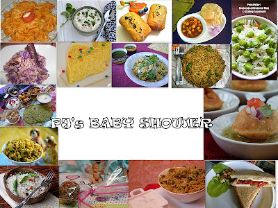 Baby Shower is a special event for all expecting mothers. In North India it is called Godh Bharai.The significanceof this is to welcome the coming baby in the family with love ,wishes and gifts.During last month’s BM we realized that our dear friend PJ is expecting her second baby…PJ of Seduce Your Tastebuds…has a lovely blog and has some awsum vegan recipes too……..excitement on receiving this news was very natural…strange I have never met PJ ,but somehow we bloggerrs have a special bond and are like a family.We decided on a virtual baby shower for PJ..wanted to keep it a surprise….but during discussions we were not sure about PJ’S reaction..Valli called her up..and here we are….
