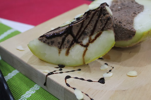 Today I have made Fruit mei Kulfi. This is kulfi where the fruit is scooped , then filled with kulfi and then frozen.On my last trip to Delhi we went to this place called Kaleva, where they had apple kulfi, mango, shareefa..I was quite fascinated with them and tasted all the varieties.The mango obviously was the best, but since we can’t get them at this time I decided to make from apple and musk melon.I made chocolate kulfi which tasted awesome with theses fruits. You could try other flavors of kulfi and combinations with fruits.