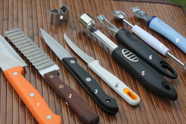The right tools play an important role in the finished product. Most of these are in our kitchens and we really don’t need to buy them , but for some garnishing techniques ,however you will need specific tools.