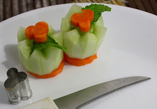 For today I have picked up cucumber and will try to show a few garnishes with it.
