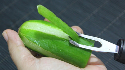 Repeat all around the cucumber evenly to get stripes .