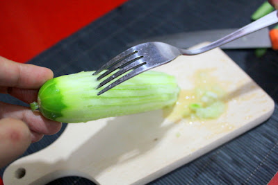 Repeat all around the cucumber.