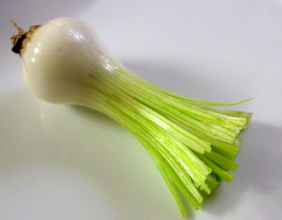 Go along the curves of onion from top to bottom, making sure the onion remains intact.