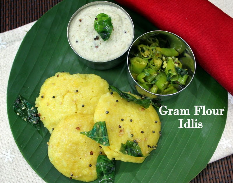 Idli is a simple but filling and healthy breakfast option. Frankly speaking I am a person who likes short cuts and so normally I get ready idli batter.But this time my daughter in law offered to make idlis, and when I told her that we can get batter she refused . I wondered but she told me she would make instant ones. These are idlis made from gram flour and semolina. They get done in a jiffy and taste fantastic