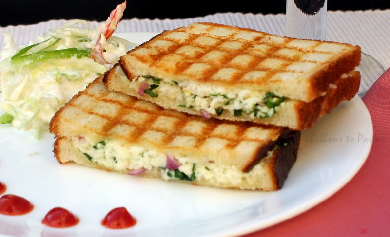 Stuff the filling between two buttered slices and grill the toast till crisp.