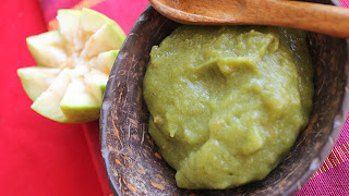 Modern food processing and world wide distribution have made every variety of fruits and vegetables available all year round,but traditionally eating vegetables and fruits seasonaly is healthier as there is variation in the nutrient content of these.Guava is one fruit which we get in winters here and they say guava is better than orange since it contains more vitamin c than orange and is much cheaper.So here is a amazing chutney from this fruit which you would love to eat with meals and lick it every time you open the frig.
