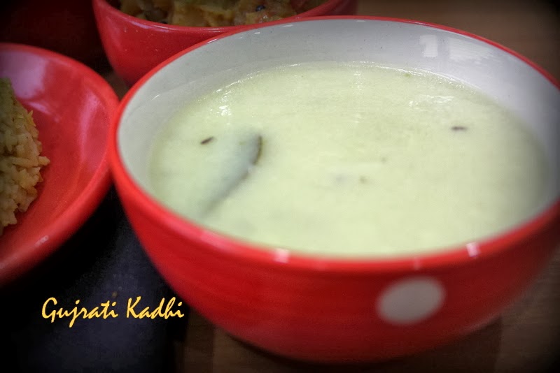 The Kadhi is very mild, the consistency is medium, rather on the thinner side.There is no turmeric used and should always be cooked in ghee.The curd used for the curry should be little sour or else one can add a little citric acid.It gets its sweetness from sugar and the balance of sweet and sour should be perfect.