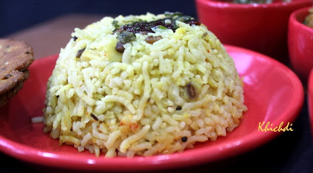 Coming to Khicdi, it is made in various ways.For today I have used Pigeon pea with rice, but you could also use split green gram or yellow moong daal.One can make saadi khichdi or vaghareli kichdi.Vaghaar is tempering and this should be always done with ghee.Once the khichdi is cooked one can always induge into extra ghee, which tastes absolutely mind blowing but …but..well one surely has to watch the inches.