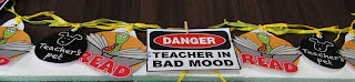 This did’nt seem enough so we made a long banner which could be put up on the top of the soft board….again printouts ..neatly cut n punched for tying to the main string I used raffia for this….also used mini pegs to hold The Danger sign.
