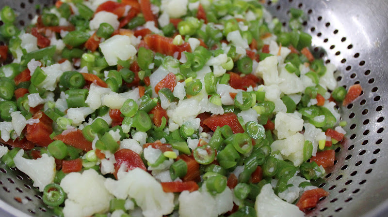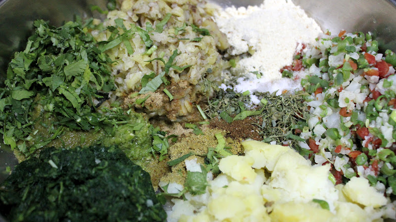 Chop the boiled vegetables also very finely.Squeeze excess water.