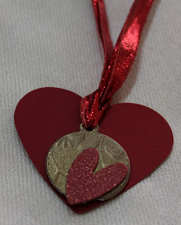 A big punched heart pierced with an arrow(made frm satay stick) n a dainty red heart r glued to make a tag.