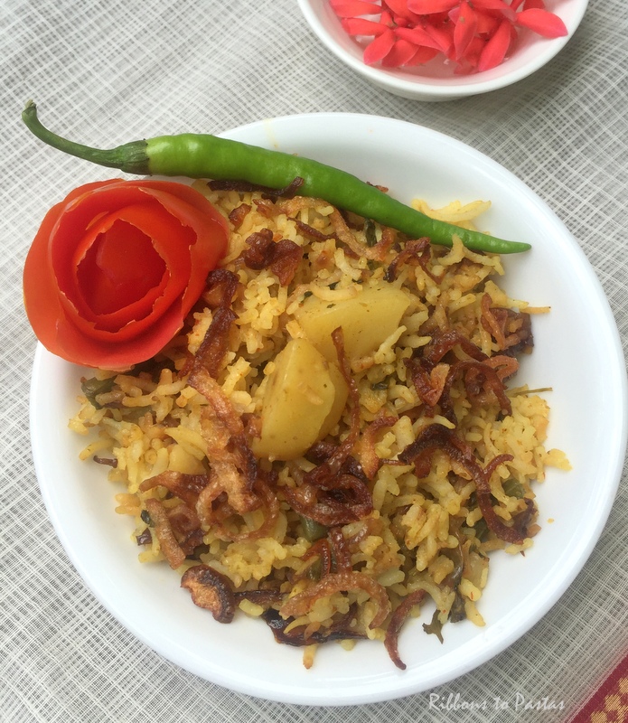 For the second day under pick an ingredient and make three courses, I have a rice dish. This is a Hyderabadi Biryani which I served for the Hyderabadi Cuisine that I had posted some time back.