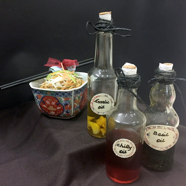Since I have put these oils under a Chinese Country, I served some noodles with this chilly oil.