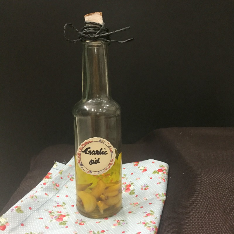 This is the oil that I made with extra virgin olive oil , used whole garlic cloves. The garlic can be crushed for a stronger flavor.