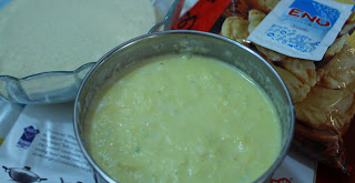 Add sooji ,ginger chilly paste,salt and ½ cup water and mix well.just before steaming ,sprinkle the fruit salt and add the lemon juice over it,when bubbles form mix gently.