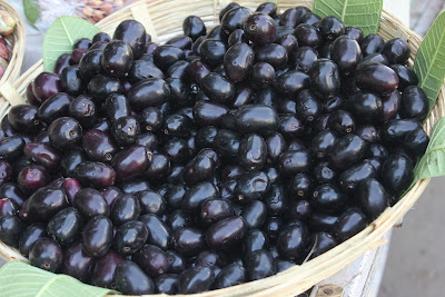 During the season one gets to see vendors selling these Jamuns along with some other berries which are available during this time.The way they display these fruits is a pretty sight and one has to stand by and admire the color combination.This fascination made me click these pics.Though I do not like the rest of the fruits..except for faalsa.In fact we have a faalsa tree in the house which right now is at peak bloom.You could check the Faalsa Juice here.