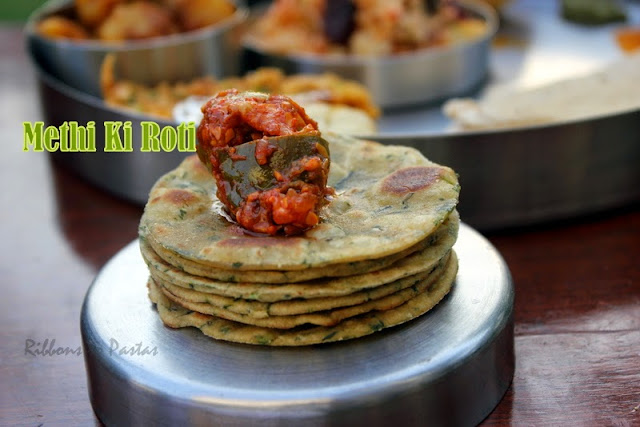 i chose a very wrong time to comment on your blog, i m hungry, terribly hungry, can i have this thali from the clicks!! That methi roti and mirchi vada i want it right now!!!!