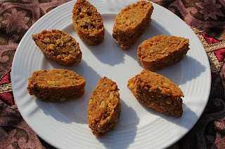 Kalmi Vadas are from Rajasthan,but again a Delhi street food.With Delhi growing there are many street foods which are restricted to the walled city..The Old Delhi.The new Delhi hardly gets to taste these yummy flavours.Everytime I visit Delhi,I must make a visit to Old Delhi…yes…to satisfy my taste buds!! The chaat wala..one who sells golgappas and papri chaat has these Kalmi Vadas and while making papdi chaat adds a piece or two if told to do so.Just Kalmi Vadas with boiled potatoes and chick peas along with kachaalu soaked in sonth…is yet another treat,addition of curd and hari chutney just makes it tongue tickling.Somehow I have never got around making those typical ones tried getting the recipe ,surfed a lot but never managed to get that typical one.Nevertheless These Kami Vadas are equally delicious….with a flavor of fennel and whole coriander seeds.We do not get kachaalus here so I did not make the complete chaat.These can be served as it is and has a shelf life of atleast 15 days.These can be enjoyed with a hot cup of coffee or a nice fizzy drink .