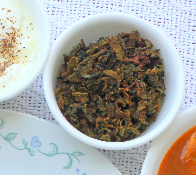 Today’s color is Green and I have chosen to cook Bitter Gourd peels.Earlier this week I mentioned about these, and since I am trying to concentrate on Sindhi dishes, I chose to make Katt. I wanted to post all Sindhi dishes trying to adjust with the themes. Katt is a peel .While cooking bitter gourds normally the peel is discarded We try to use it as a dry saute or sun dry it and store.The recipe for both is almost the same.