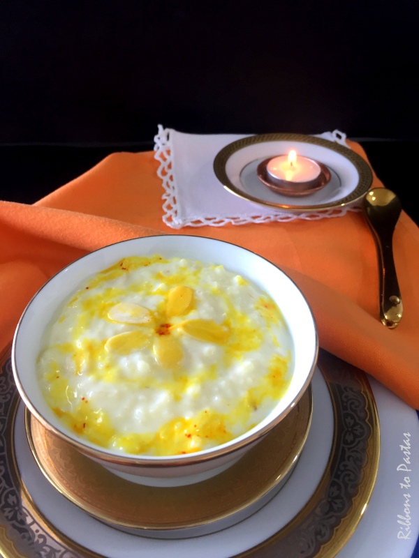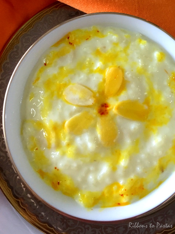 For the last day under the ingredient ‘Rice’ I have a dessert. Dessert is the perfect finale to a meal, and I made this Kesariya Badaam Kheer which is very exotic , rich and delicious. I have always loved kheers and have posted a number of them recently. Infact I shall compile them and make a page so it gets easy to access them . The badaam Kheer is made with rice and some ground almonds. The Kheer is really creamy and saffron makes it aromatic and exotic.