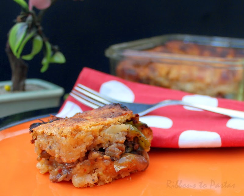 This is the vegetarian version of kibbeh. This version uses potatoes as the binder for the bulgar wheat instead of meat. But, if you like the kibbeh but like the meat filling, you can definitely substitute the sauteed veggies with the traditional kibbeh meat filling. This is great for any time of day , though I served it for dinner. My husband particularly was very happy with this dish as he is an ardent lover of bulgar wheat. The stuffing was very delicious, the walnuts and pine nuts gave it a nutty crunchy taste and i was digging in to find these baked nuts . My dish was a little over baked at the edges, but thank God it did not taste burnt. The Kibbeh reminded me of the Gujju handvo where we add veggies to the flour and bake, every country has their own specialty but yet there are so many similarities.