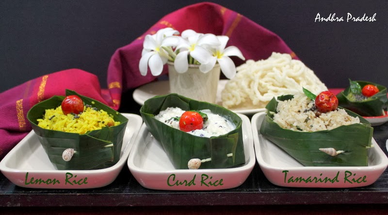 Lemon Rice, Curd Rice and Tamarind Rice with Curry Leaves Chutney - Andhra Special