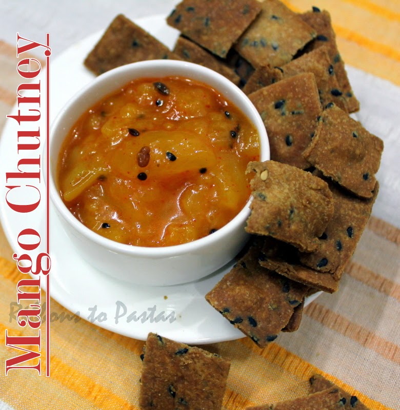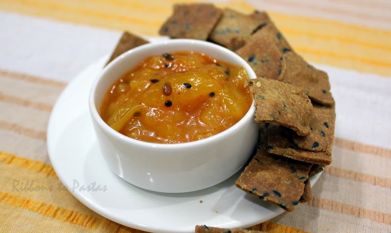 Kids Delight , fruit recipes ! When Valli announced this theme, I took it up . To tell the truth I am not a fruit person, but I love fruit forms. I love fruity chaats, fruity bakes, fruity salads,not to miss the fruity drinks! For the very first day under this theme I shall share the recipe of Mango Chutney. Yes this is the Mango Chutney which I served with Whole Wheat Sesame Crackers.