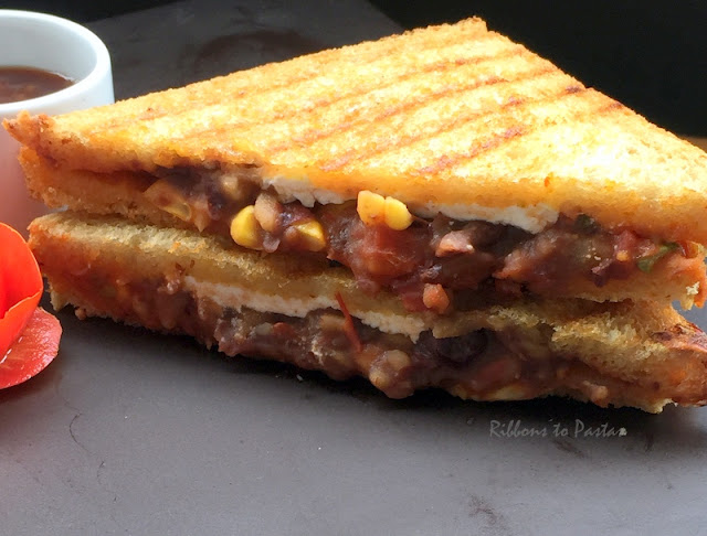 One of the most common left over in our house is Raajma. Yes the same Raajma Chawal which I greedily make extra . I always enjoy eating these for the next meal too. For today I have transformed our Punjabi Raajma into a Mexican Toastie.