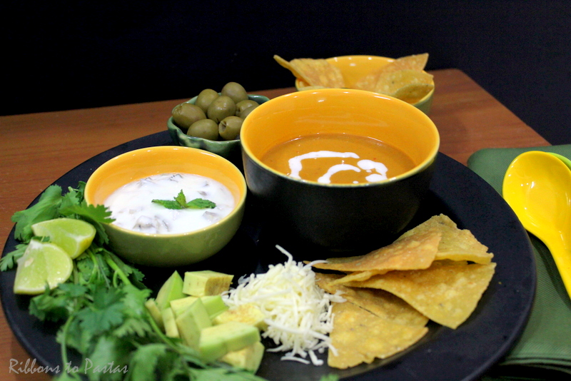 It surely is a simple tomato soup but let me tell that the soup gets its creaminess from the rice. The canned tomatoes have a unique flavor, so do not try to substitute with raw ones.The garlic and lime add a amazing zing to the soup and when served with the dip, chips and cheese and olives, it just makes it a complete meal. The dip gets it crunch from onion and the jalapeños, they make it little spicy and tarty. All in all a soup you would want to make over and over again.