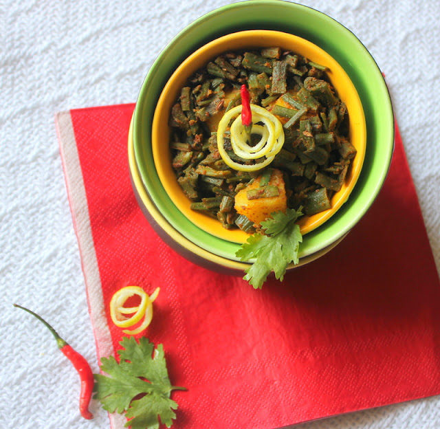 This is a dish which gets its flavor by cooking in ghee and tastes best if it is on the spicy side.A real quick side dish.